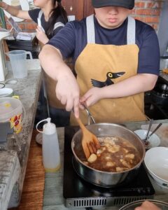 加入肉骨茶酱、清水、酱油与老抽,搅拌煮至沸腾。