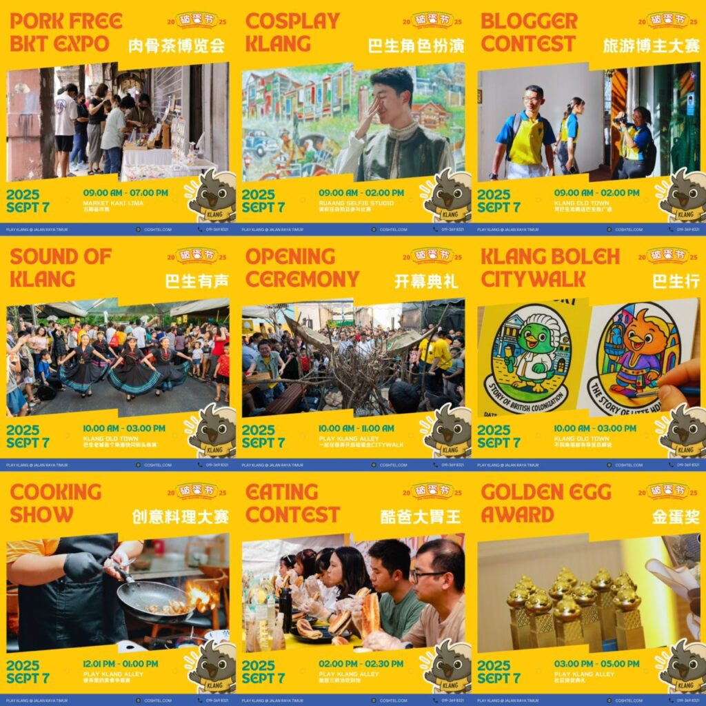 From now until 2pm on event day, post on social media with the hashtag #KlangAmbassador to receive a Klang Tourism Passport, Klang Ambassador Pass, and Klang Map. You’ll also compete for the Photography, Video, and Ambassador Awards!
