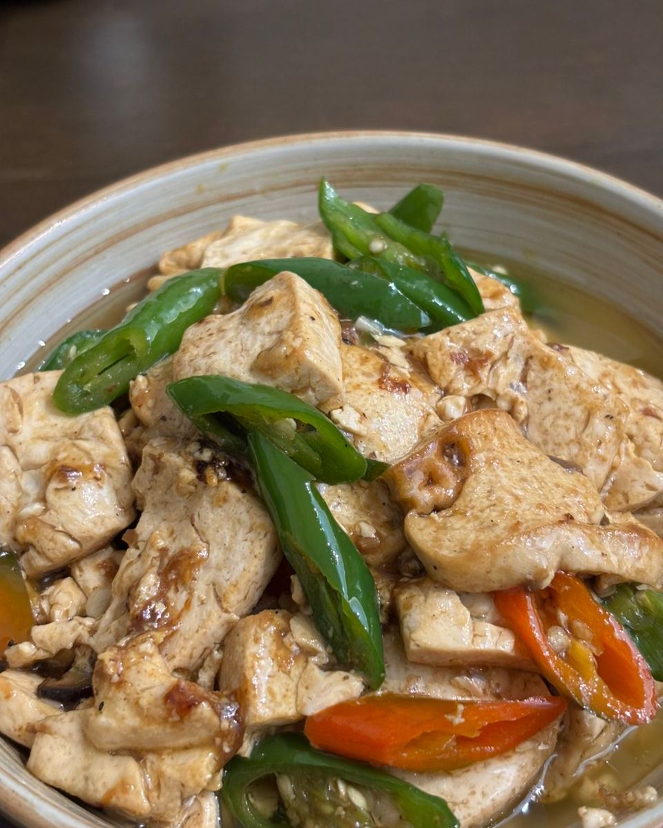 Crispy yet tender tofu coated in rich sauce – ideal with steamed rice!